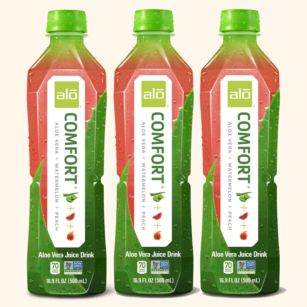 ALO COMFORT est une boisson au jus et à la pulpe d’aloe vera 100% naturels. ALO vous offre une boisson délicieuse et rafraîchissante. Le véritable jus d’aloe vera est directement extrait de la feuille d’aloe.