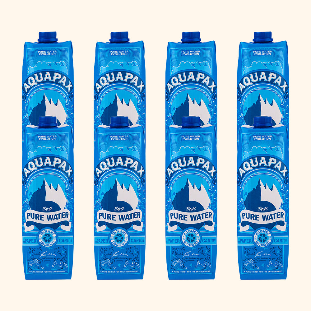 L’emballage d’Aquapax développé par la société Tetra Pak protège l’eau de l’impact de l’air, du soleil, et de toute éventuelle agression extérieure. L’eau minérale Aquapax est ainsi constamment pure et fraîche, contrairement à une eau emballée dans du plastique.