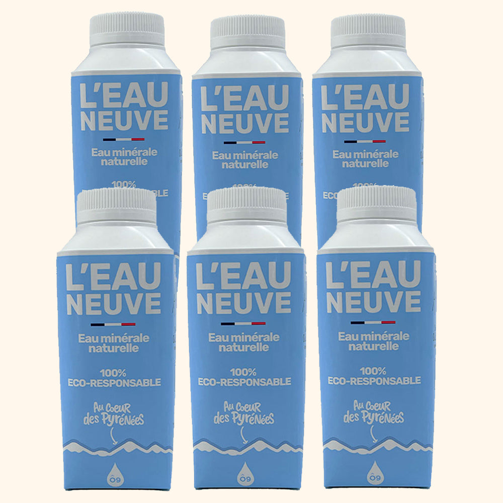 Grâce à un partenariat exclusif avec Tetra Pak la bouteille Eau Neuve est 100% renouvelable et entièrement recyclable. Elle protège l’eau de l’impact de l’air, du soleil, et de toute éventuelle agression extérieure. L’eau minérale Eau Neuve est ainsi constamment pure et fraîche, contrairement à une eau emballée dans du plastique.