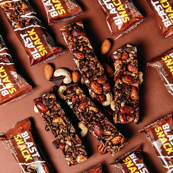 Les barres énergétiques bio Blast Snack sont des barres de fruits secs bio, croquantes et savoureuses. Les meilleurs ingrédients sont sélectionnés pour leur goût et leurs qualités nutritionnelles.