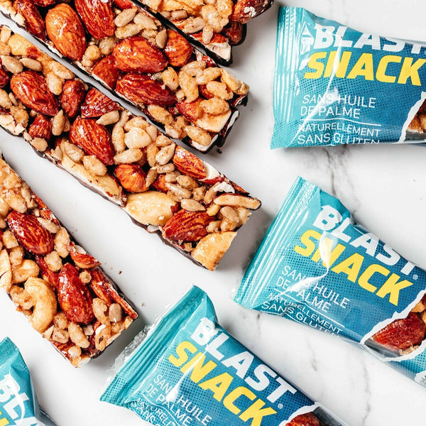 Les barres énergétiques Blast Snack sont composées uniquement d'ingrédients naturels : des fruits secs entiers et des fruits séchés enrobés de sirop d'agave, et c'est tout !