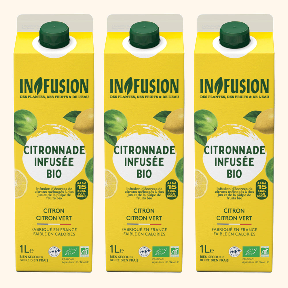 Cette citronnade est réalisée à base d'infusion de zestes de citron jaune et vert, de jus de fruits et d'eau pure.