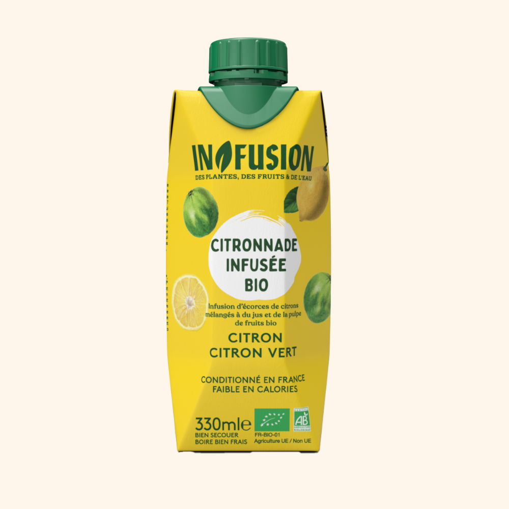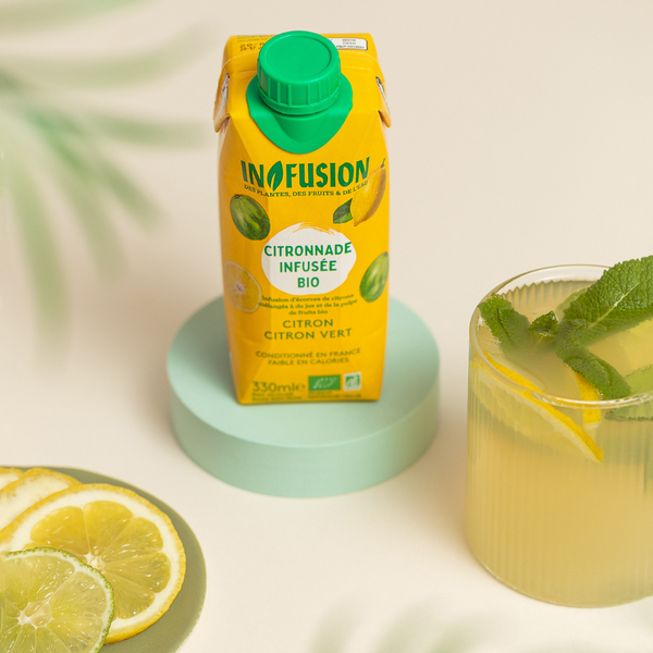 Cette citronnade est réalisée à base d'infusion de zestes de citron jaune et vert, de jus de fruits et d'eau pure.