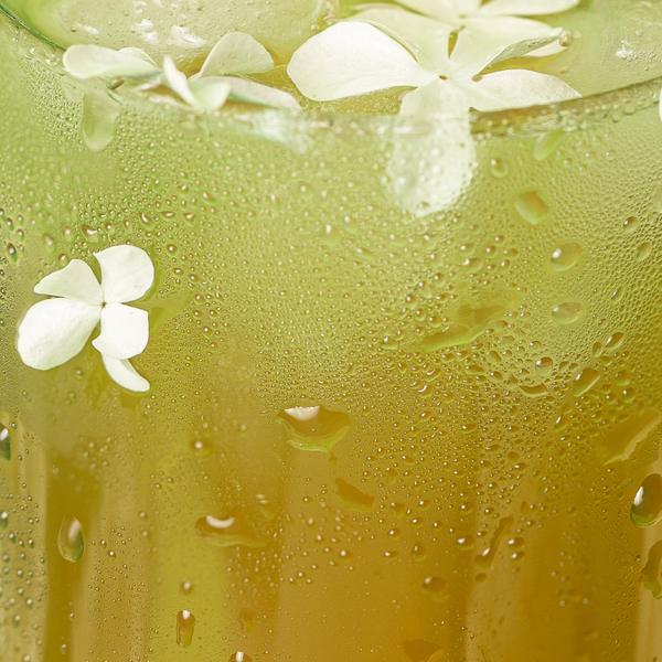 Le thé vert Sencha vient de Chine, où il est cultivé en plein soleil pour capter toute son énergie. Le thé vert est prisé car il est à la fois doux et tonique et il se marie parfaitement au sureau.