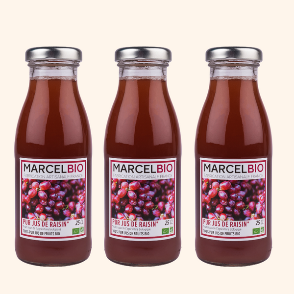 Le jus de raisin Marcel Bio est 100% pur jus. C’est une recette 100% naturelle et locale.