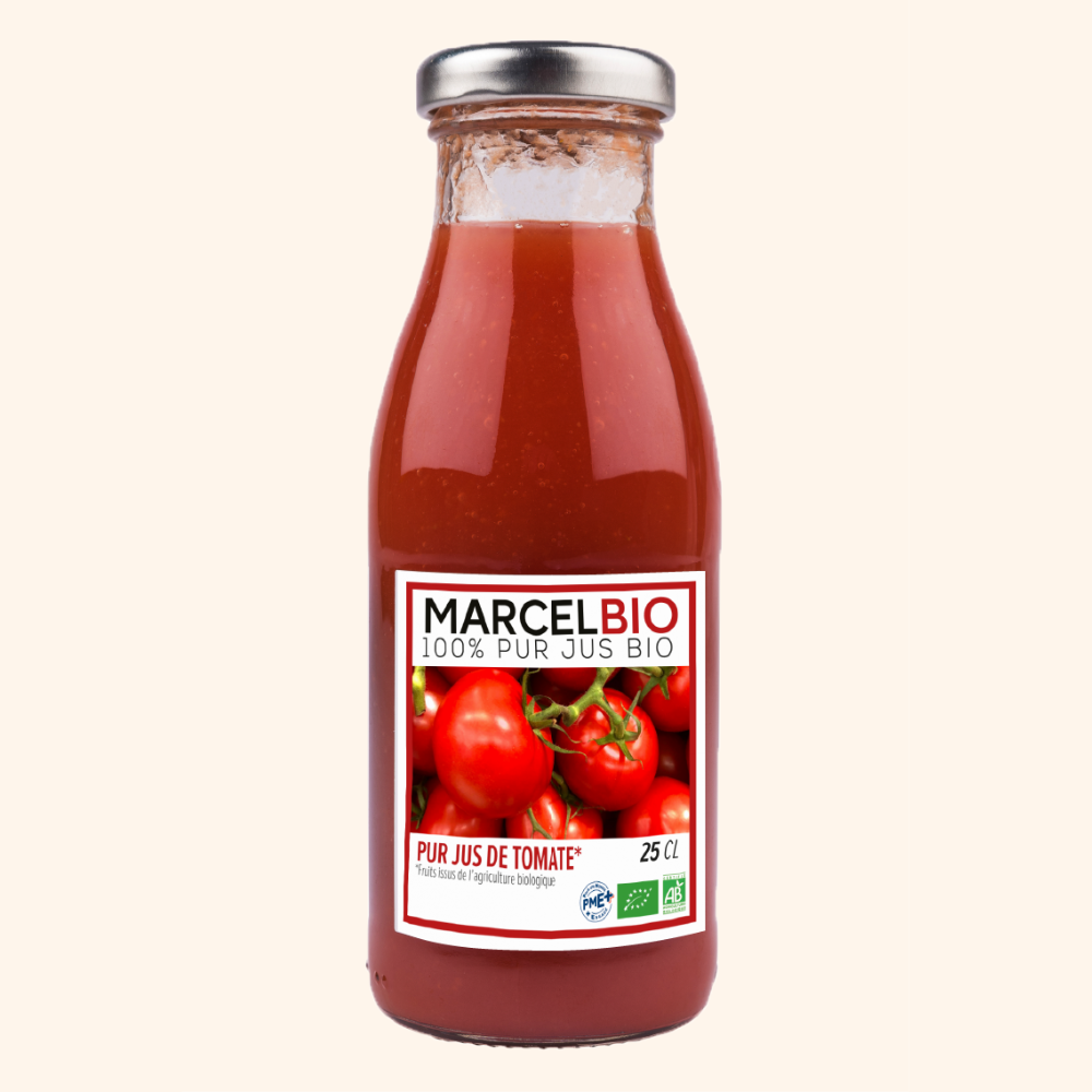 Le jus de tomate Marcel Bio est 100% pur jus. C’est une recette 100% naturelle issue de l'agriculture écologique.