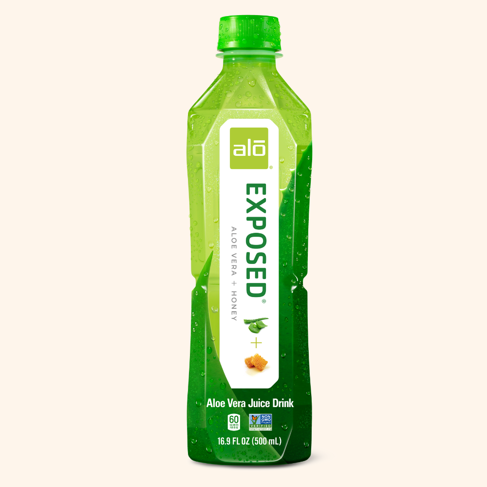ALO EXPOSED est une boisson au jus et à la pulpe d’aloe vera 100% naturels. ALO vous offre une boisson délicieuse et rafraîchissante. Le véritable jus d’aloe vera est directement extrait de la feuille d’aloe.
