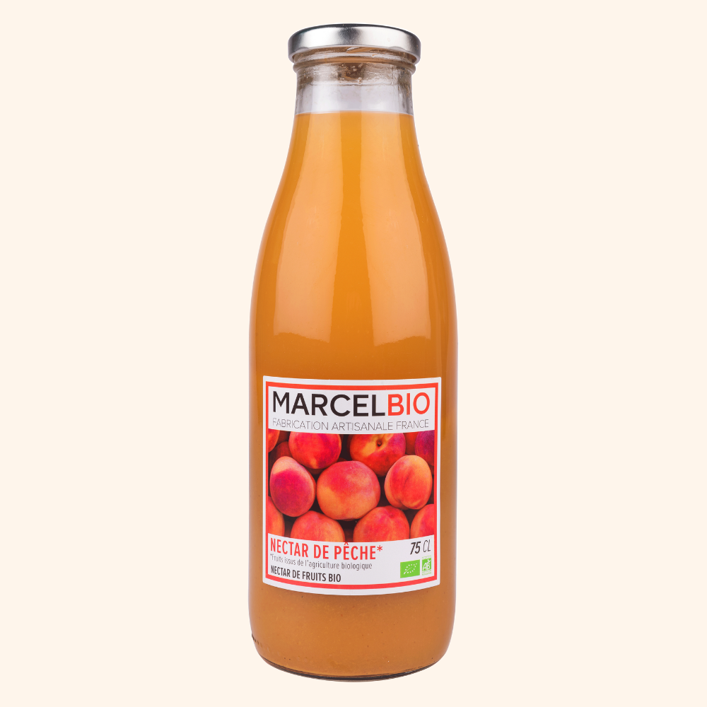 Les nectars Marcel Bio sont issus de fruits bio soigneusement sélectionnés par les agriculteurs partenaires de Marcel. Marcel Bio s’engage auprès de la filière fruit du Languedoc Roussillon à travers un partenariat fort avec les agriculteurs lui permettant de maîtriser ses approvisionnements en pomme, poire, abricot, pêche et raisin Bio d’origine française.