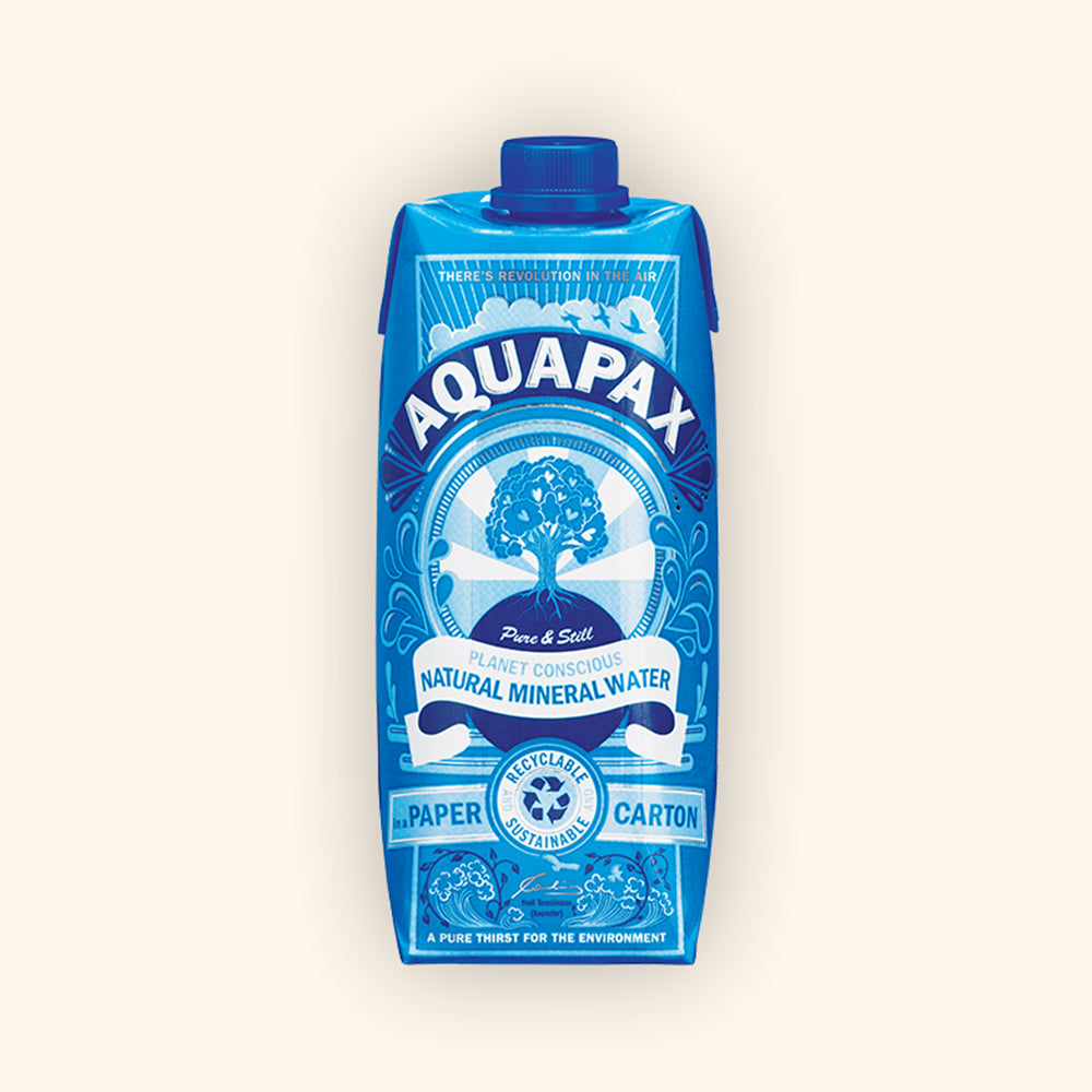 L’emballage d’Aquapax développé par la société Tetra Pak protège l’eau de l’impact de l’air, du soleil, et de toute éventuelle agression extérieure. L’eau minérale Aquapax est ainsi constamment pure et fraîche, contrairement à une eau emballée dans du plastique.