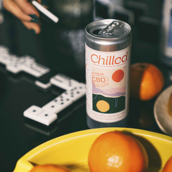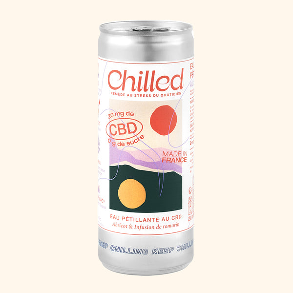 Chilled est la première boisson française au CBD (abréviation de cannabidiol). Une eau de source naturelle issue de montagne autrichienne, pétillante, infusée au romarin, qui contient 20mg de CBD par canette de 25cl, zéro sucre et seulement 1 calorie.
