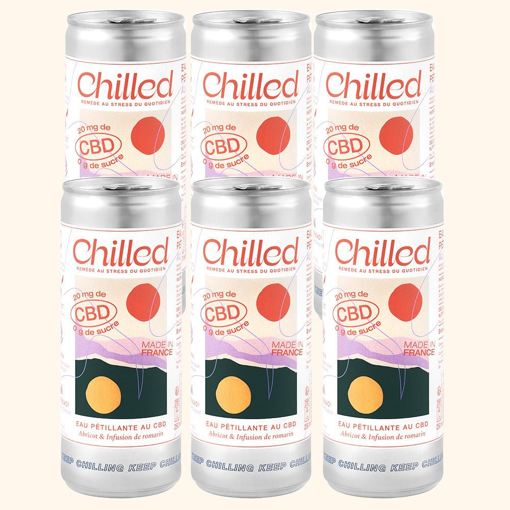 Chilled est la première boisson française au CBD (abréviation de cannabidiol). Une eau de source naturelle issue de montagne autrichienne, pétillante, infusée au romarin, qui contient 20mg de CBD par canette de 25cl, zéro sucre et seulement 1 calorie.