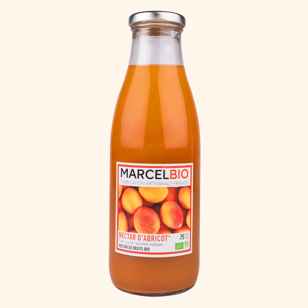 Les nectars Marcel Bio sont issus de fruits bio soigneusement sélectionnés par les agriculteurs partenaires de Marcel. Marcel Bio s’engage auprès de la filière fruit du Languedoc Roussillon à travers un partenariat fort avec les agriculteurs lui permettant de maîtriser ses approvisionnements en pomme, poire, abricot, pêche et raisin Bio d’origine française.