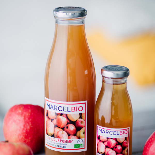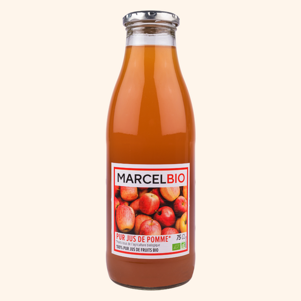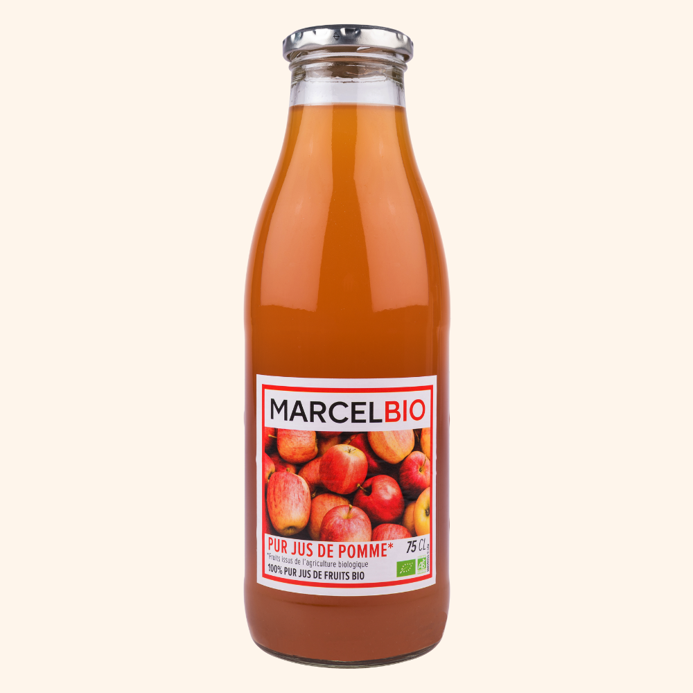 Le jus de pomme Marcel Bio est 100% pur jus. C’est une recette 100% naturelle et locale.